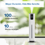 • Tiene un gran tanque de agua de 10 litros, lo que permite un funcionamiento prolongado (hasta 100 horas en modo bajo) según el fabricante.