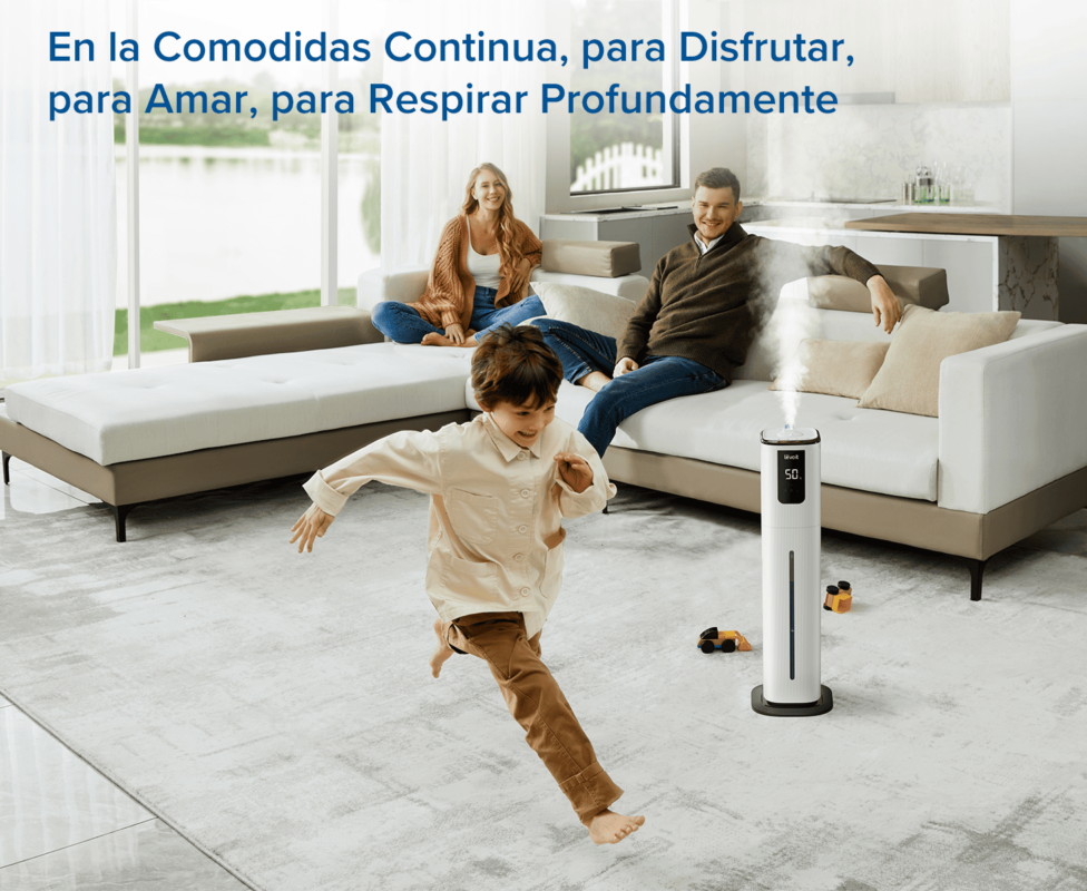 • 🌫️ Humidificación potente y uniforme: Su tecnología avanzada genera una niebla fina y constante, ayudando a aliviar la sequedad en la piel, garganta y vías respiratorias mientras mantiene un ambiente saludable.