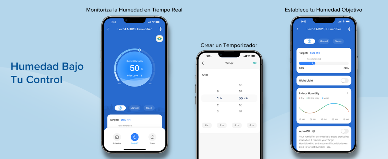 • El humidificador Levoit OasisMist™ 1000S incluye características como una luz nocturna opcional y un temporizador programable. Estas funciones adicionales brindan comodidad y versatilidad para adaptarse a tus preferencias y necesidades específicas.